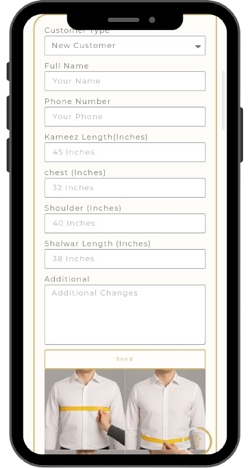 Next, you will be redirected to the Measurement Page, where you will be required to enter your complete measurements. Kindly fill in all the fields carefully to ensure the perfect fit. Once you have submitted your details, you will be automatically redirected to the Payment Page.
